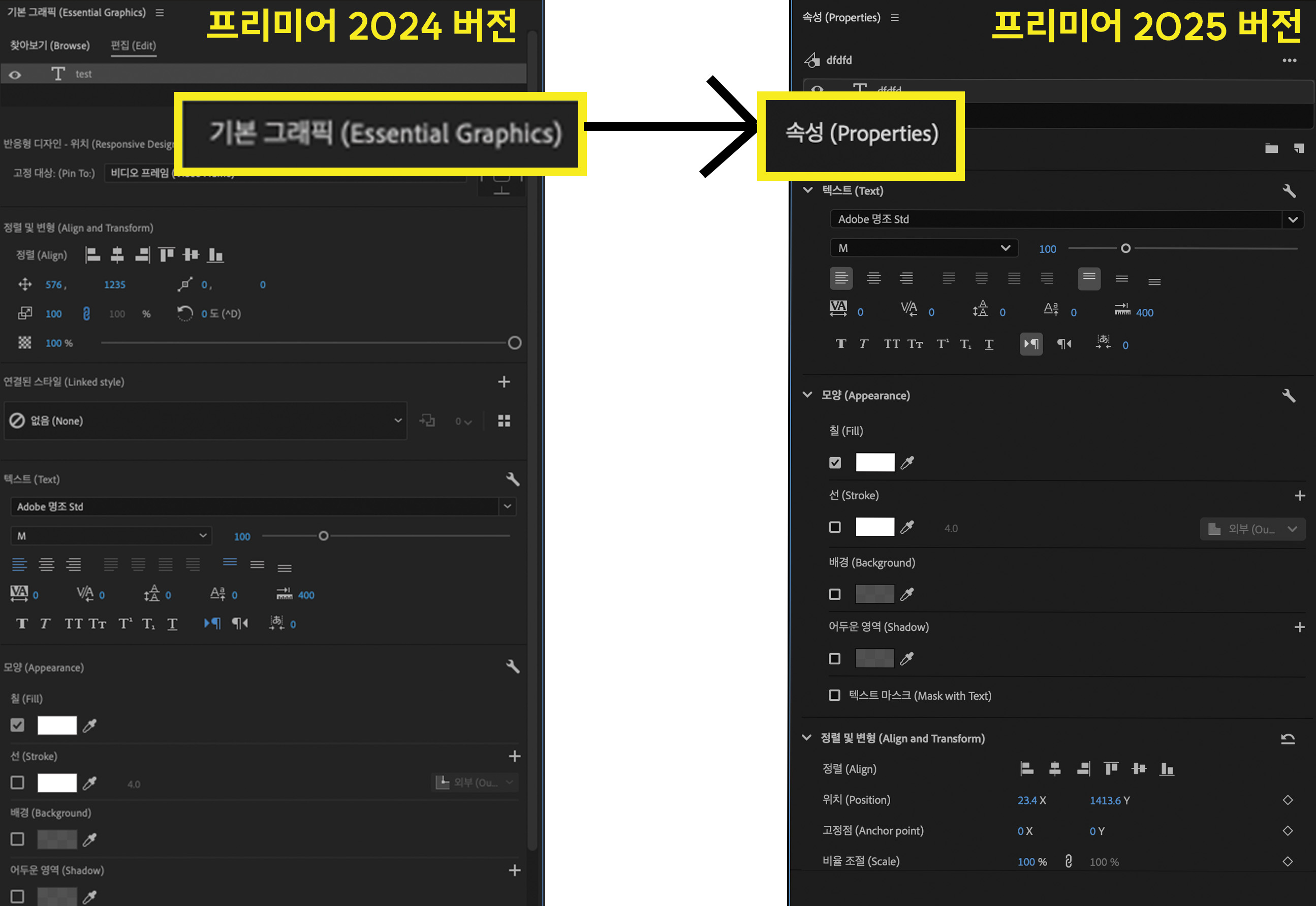프리미어 2025 글씨체 변경. 프리미어 기본그래픽 창. 프리미어 Essential Graphics 창. 글씨체 변경 창카테고리 없음 2024. 11. 5. 15:18